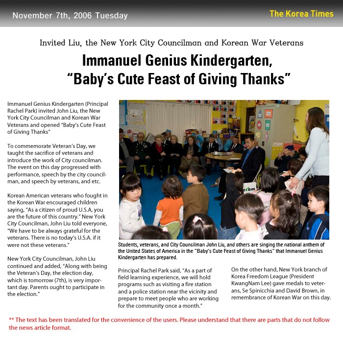 Invited Liu, the New York City Councilman and Korean War Veterans