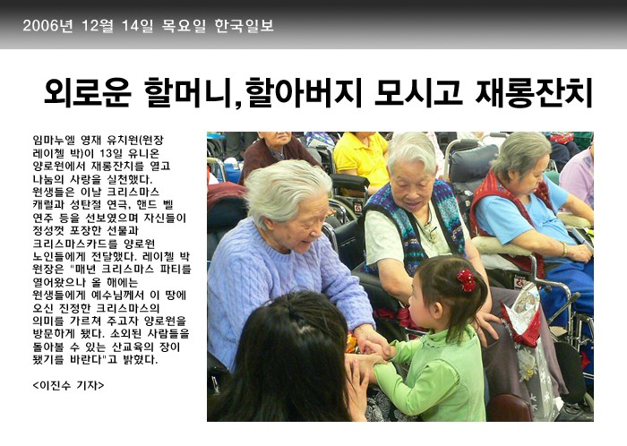 [한국일보] 외로운 할머니, 할아버지 모시고 재롱잔치